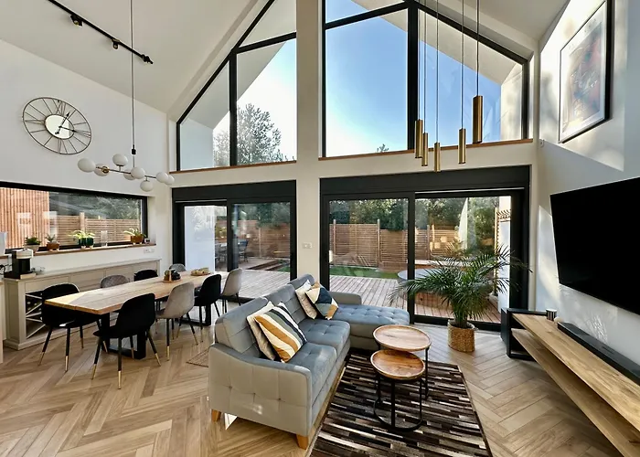 Dom na Kaszubach z Sauną i Jacuzzi - Wiele Dobrego oferuje wyposażony aneks kuchenny, a także jadalnię na świeżym powietrzu dla wygody gości. Dostępne udogodnienia obejmują piekarnik i zmywarkę do naczyń. Najbliższym lotniskiem jest port lotniczy Gdańsk im. Lecha Wałęsy, położony w odległości 100 km od willi. Na miejscu można uprawiać wiele sportów, w tym wędrówki piesze i jazdę na rowerze.